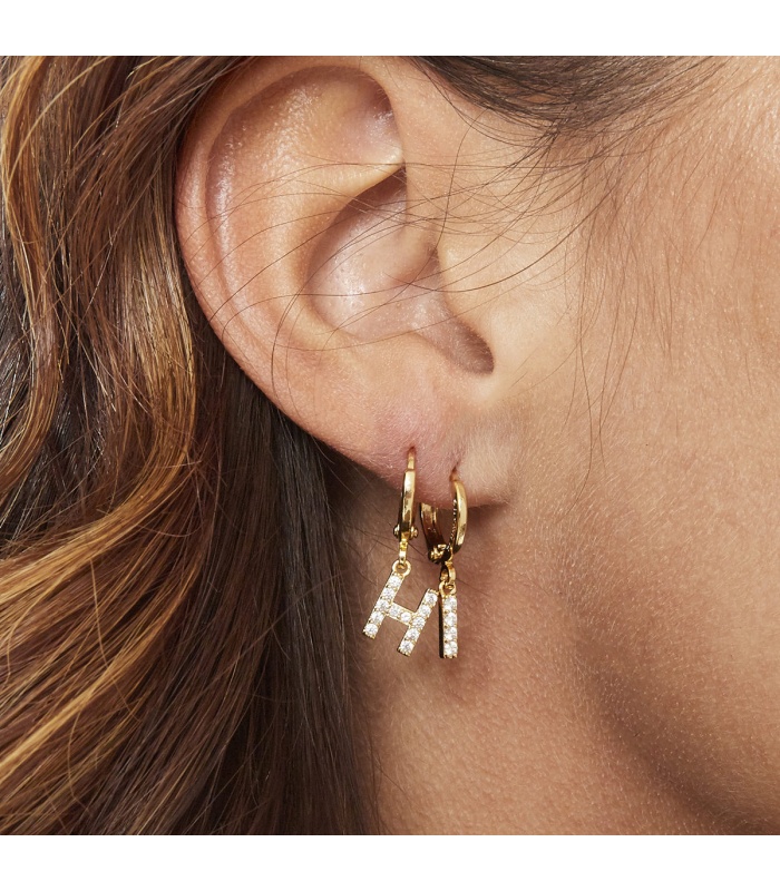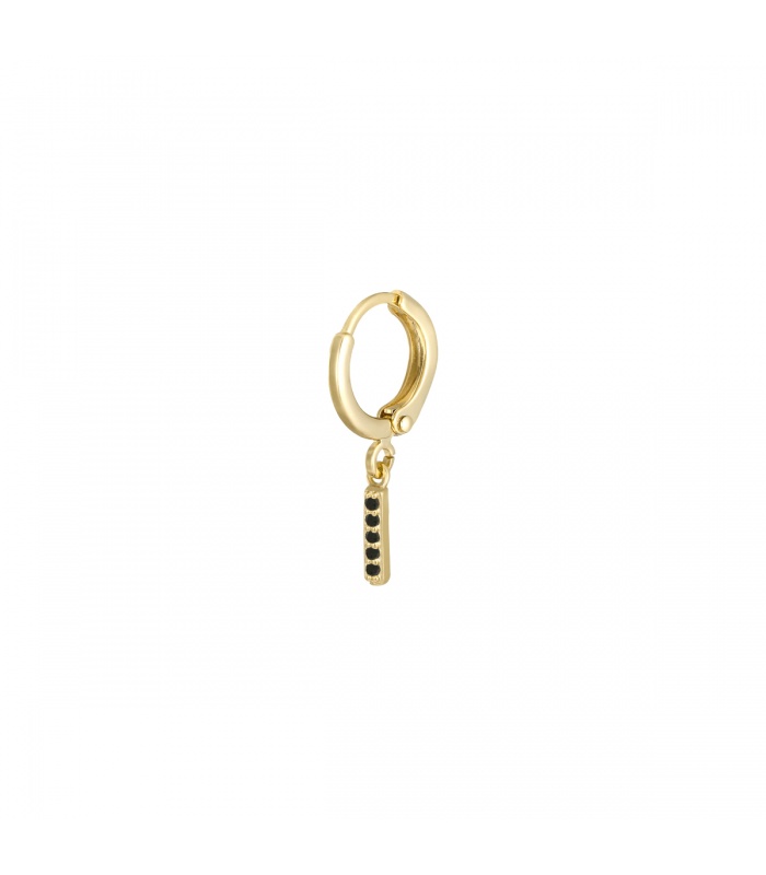 Goudkleurige oorbel met zwarte zirkonia steentjes en initiaal I