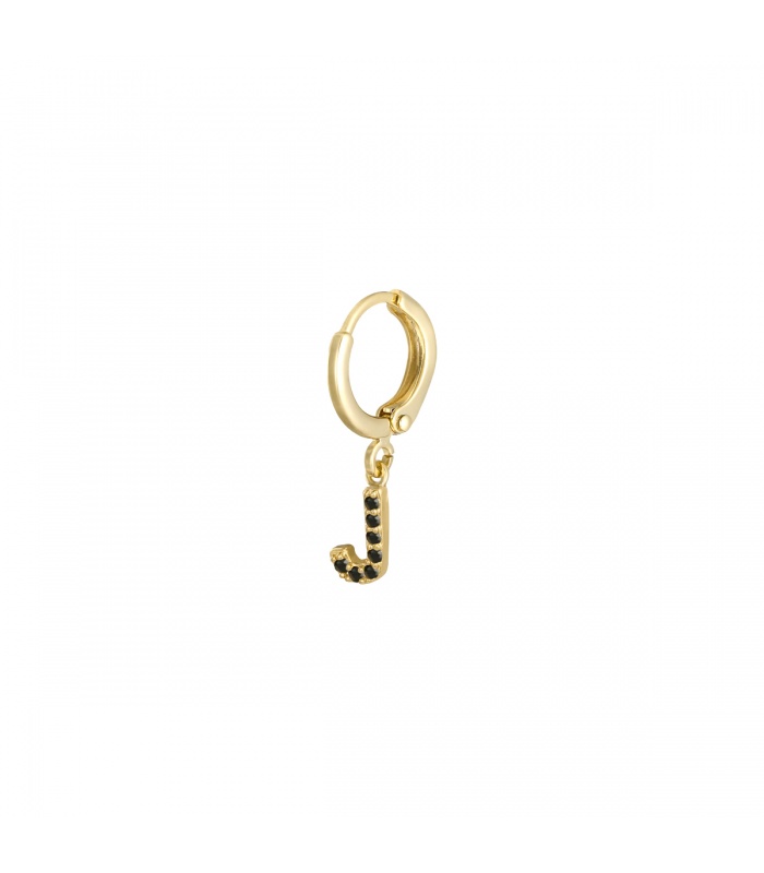 Goudkleurige oorbel met zwarte zirkonia steentjes en initiaal J