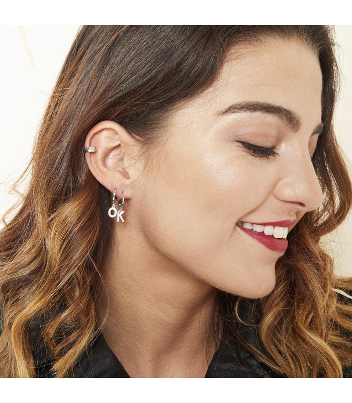 Goudkleurige oorbel met zwarte zirkonia steentjes en initiaal K