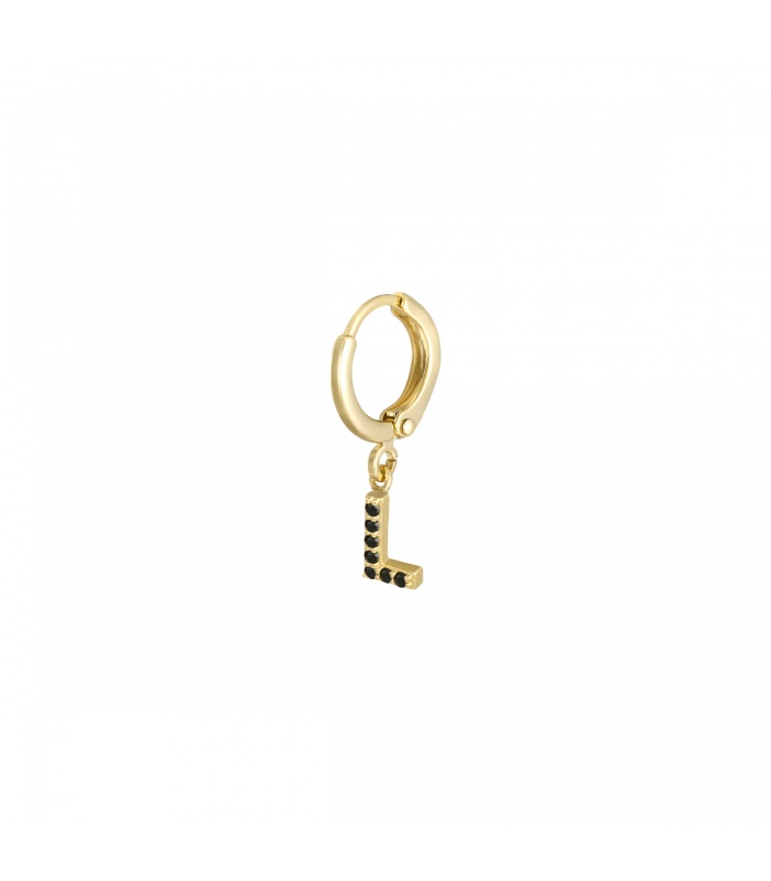 Goudkleurige oorbel met zwarte zirkonia steentjes en initiaal L