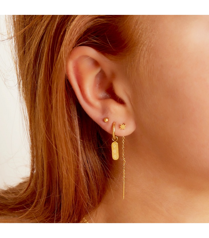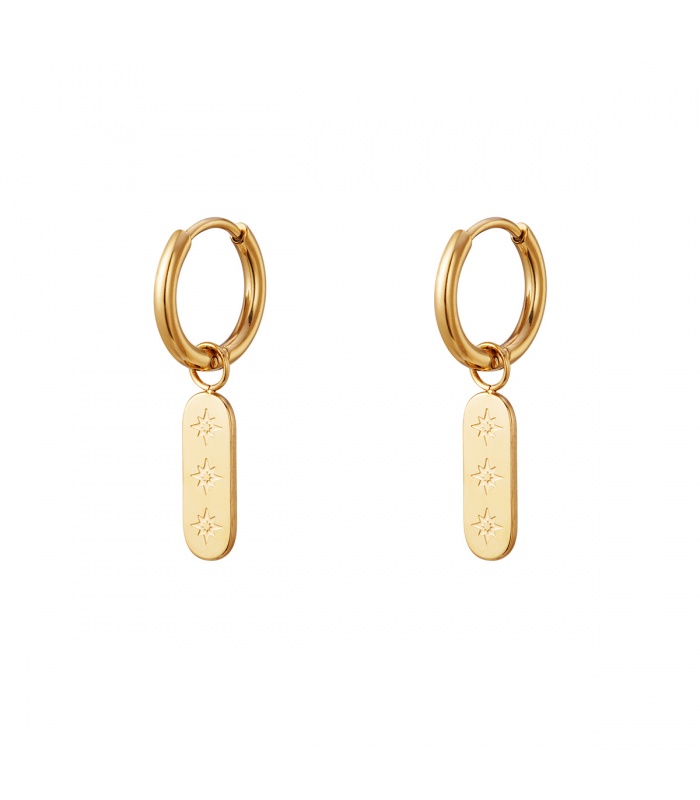 Goudkleurige oorbellen met een hanger met kleine zonnetjes.