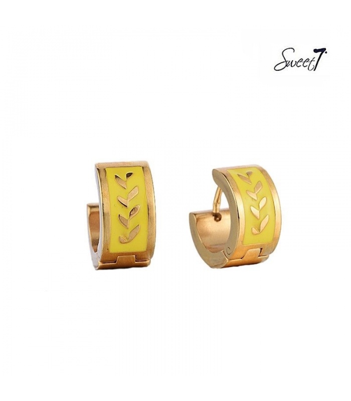 Goudkleurige oorbellen met gegraveerde lauwerkrans geel.