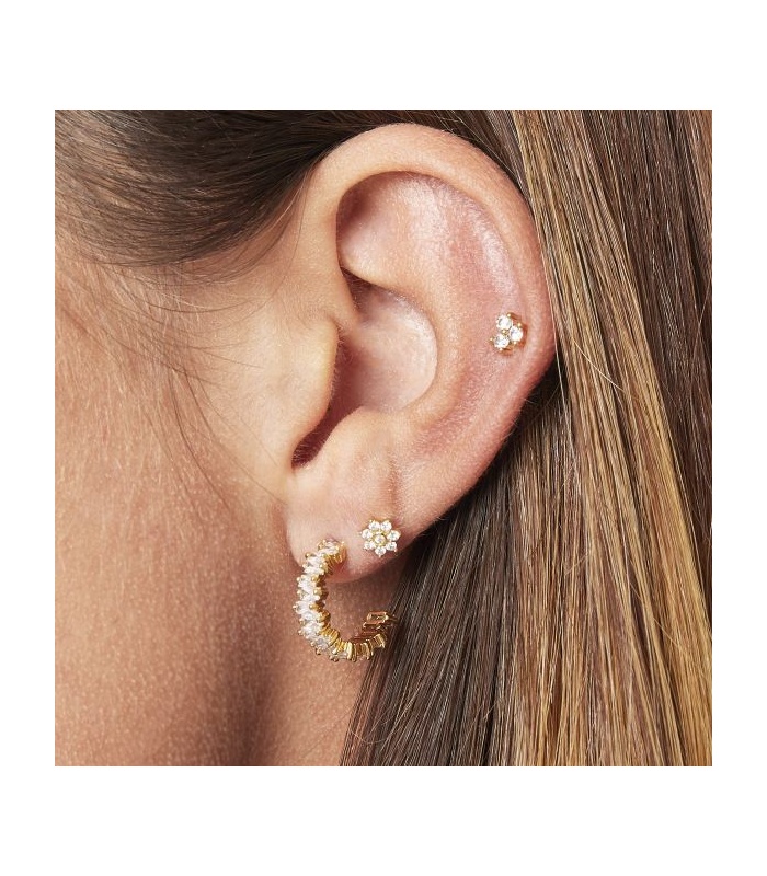 Goudkleurige oorbellen met heldere zirkonia steentjes.