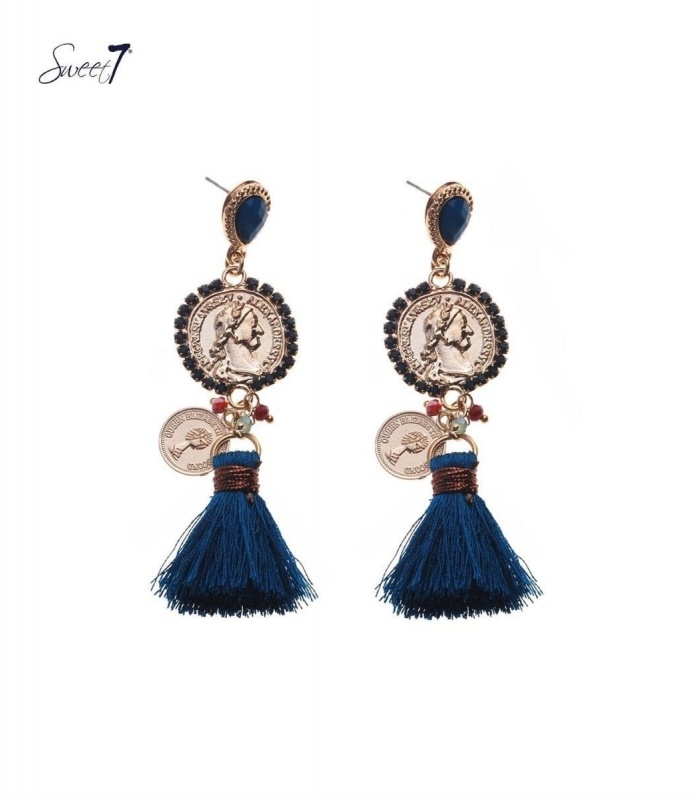 Bestel deze prachtige goudkleurige oorbellen met munt bedel en blauwgroene kwasten van Sweet 7 nu en voeg wat spannende avontuurlijkheid toe aan je sieradencollectie!