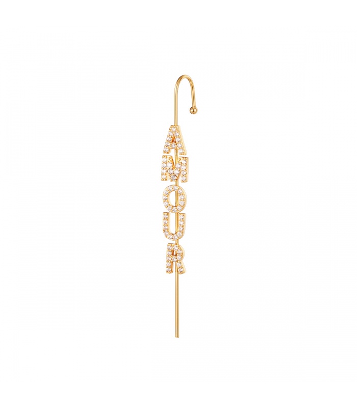 Goudkleurige oorcrawler met de tekst ´Amour´.