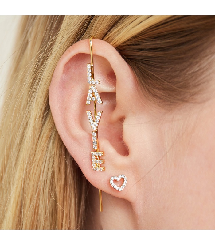 Goudkleurige oorcrawler met de tekst ´La Vie´.