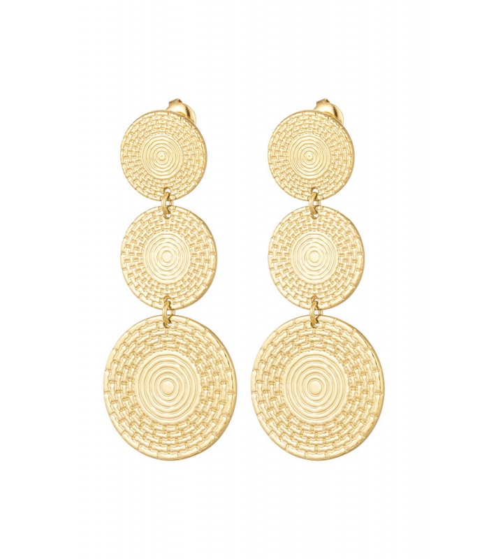 Goudkleurige oorhangers met 3 bewerkte rondjes
