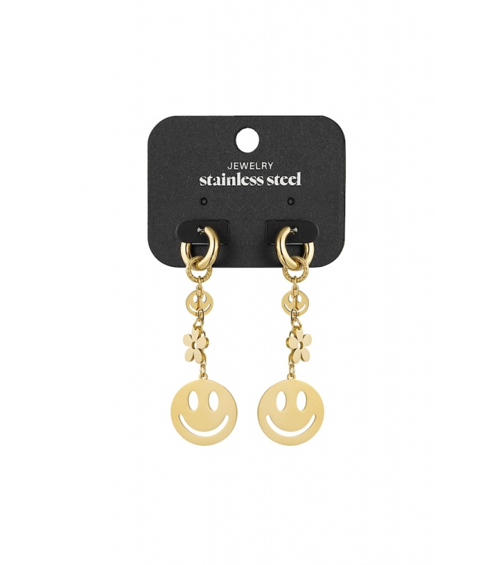 De hangers bestaan uit een vrolijke smiley en een delicate bloem. Perfect om elke outfit op te fleuren en een glimlach op je gezicht te toveren. Deze oorbellen zijn ideaal voor wie op zoek is naar een accessoire dat zowel stijlvol als speels is. Ze voegen een unieke touch toe aan je look en zijn geschikt voor zowel casual als formele gelegenheden.