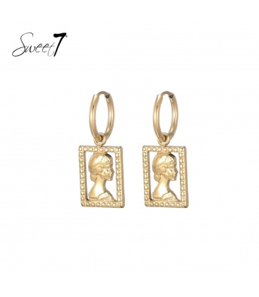 Deze goudkleurige oorhangers met een gedetailleerde dame als bedel zijn een opvallende toevoeging aan elke sieradencollectie. De verfijnde afbeelding van de dame geeft deze oorbellen een artistiek en elegant karakter. Perfect voor liefhebbers van vintage stijl met een moderne twist.