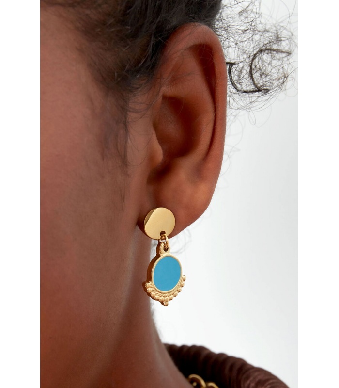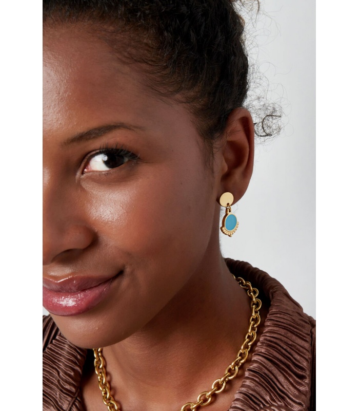 Deze prachtige goudkleurige oorhangers met een roze bedel zijn een ware eyecatcher. Het subtiele roze van de bedel contrasteert prachtig met de warme goudtinten, wat zorgt voor een elegante en verfijnde look. Perfect voor een avondje uit of om je dagelijkse outfit een chique touch te geven.