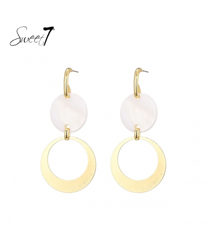Goudkleurige oorhangers met een wit schelpen bedel