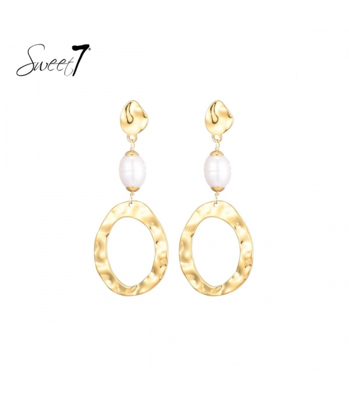Boost je sieradencollectie met deze stijlvolle goudkleurige oorhangers met wit schelpenpareltje!