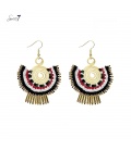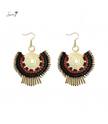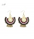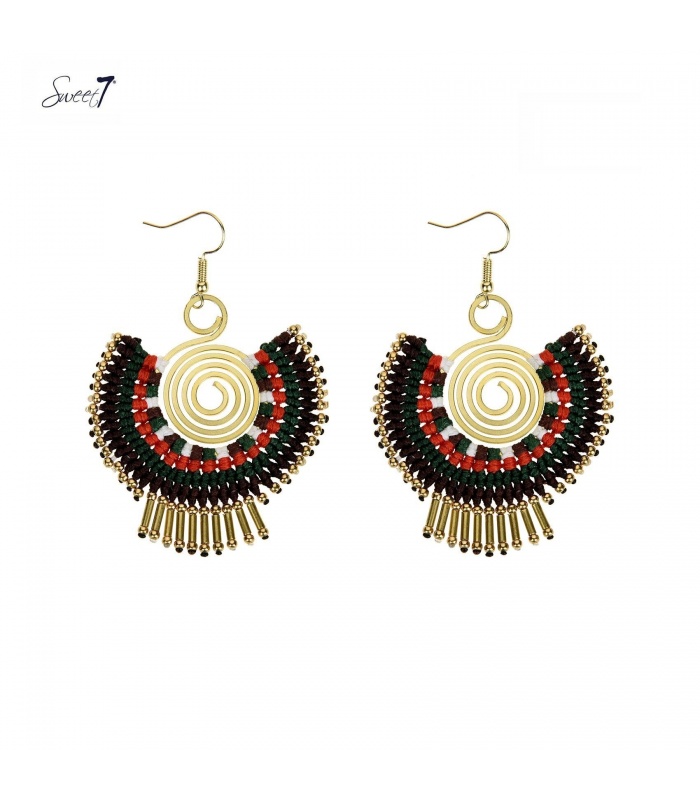Goudkleurige oorhangers met gekleurd draad en kleine kraaltjes.