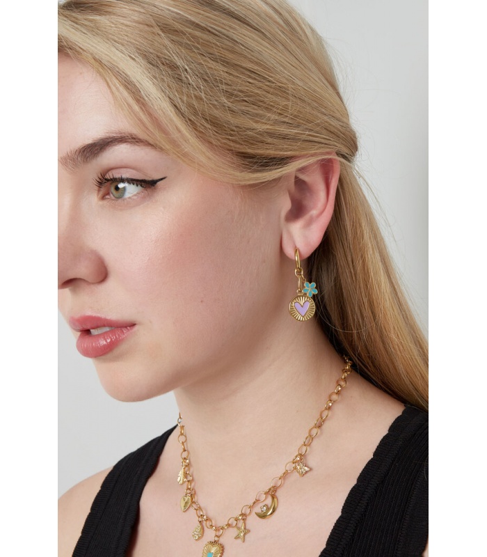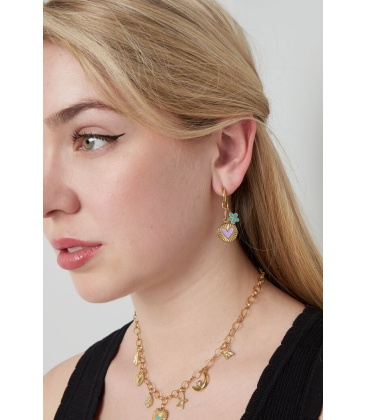 Geef je outfit een speelse twist met deze trendy ooraccessoires. De combinatie van goud en levendige bedels zorgt voor een opvallende uitstraling die perfect is voor elke gelegenheid.