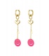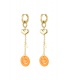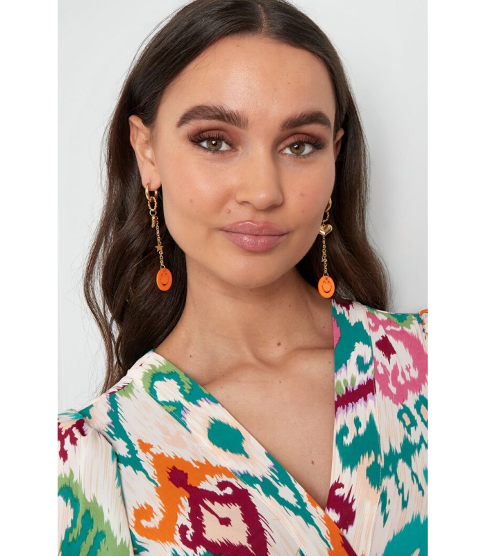 Goudkleurige oorhangers met hartje en een oranje smiley.