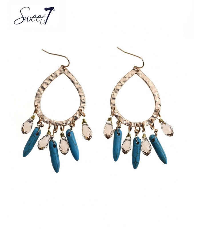 Goudkleurige oorhangers met turquoise staafjes en kralen