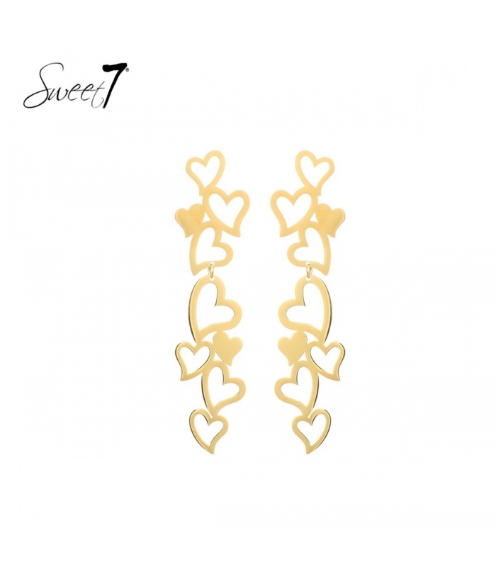 Deze elegante oorbellen combineren een goudkleurige afwerking met diverse hartvormige hangers, wat zorgt voor een romantische en tijdloze uitstraling. Het verfijnde ontwerp maakt ze geschikt voor zowel dagelijkse outfits als speciale gelegenheden.