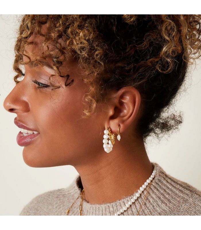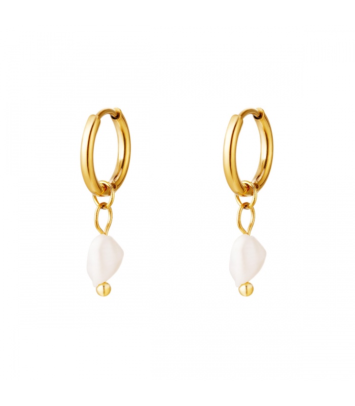 Goudkleurige oorringen met zoetwaterparel.