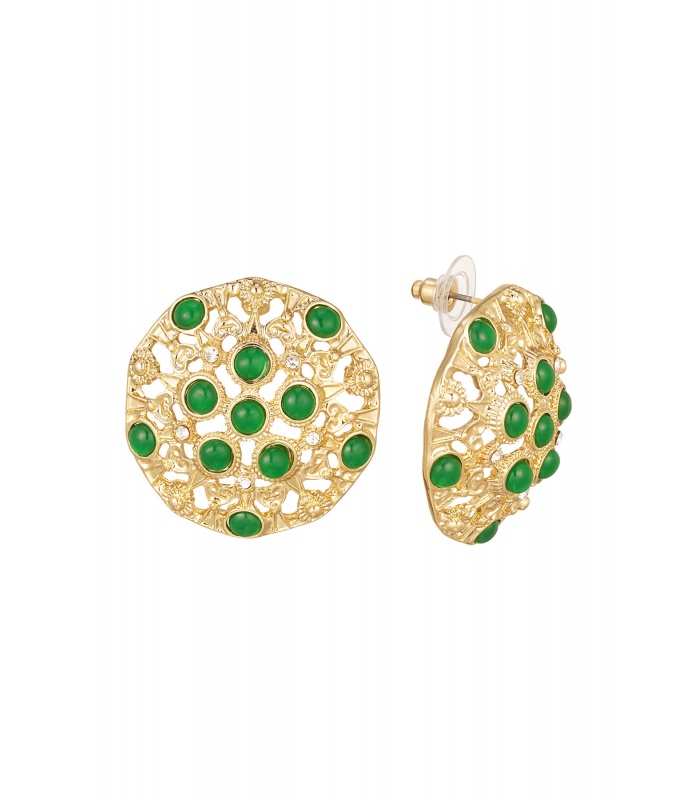 Wil je je sieradencollectie naar een hoger niveau tillen? Dan zijn onze goudkleurige open gewerkte oorhangers met groene steentjes een absolute must-have. Deze oorbellen zijn de perfecte accessoire om je look compleet te maken, of je nu naar een chique avondje uit gaat of je dagelijkse outfit wilt opvrolijken. Met hun opvallende ontwerp en trendy kleuren zul je zeker de aandacht trekken. Dus waar wacht je nog op? Bestel nu en geef jezelf die schitterende upgrade die je verdient!