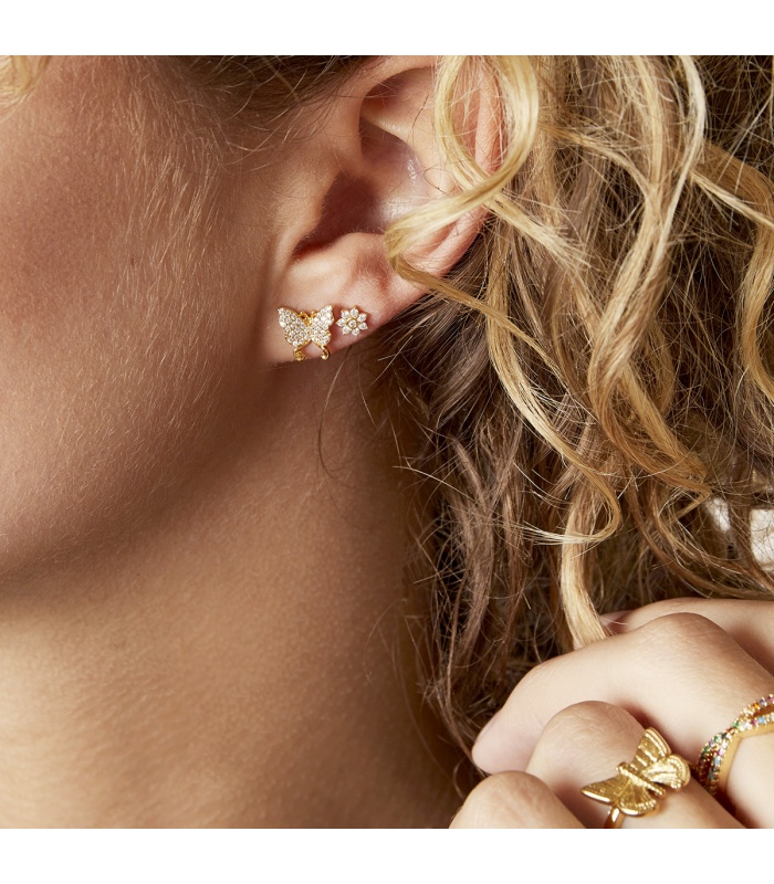 Goudkleurige vlinder oorbellen met kleine steentjes
