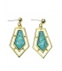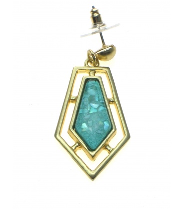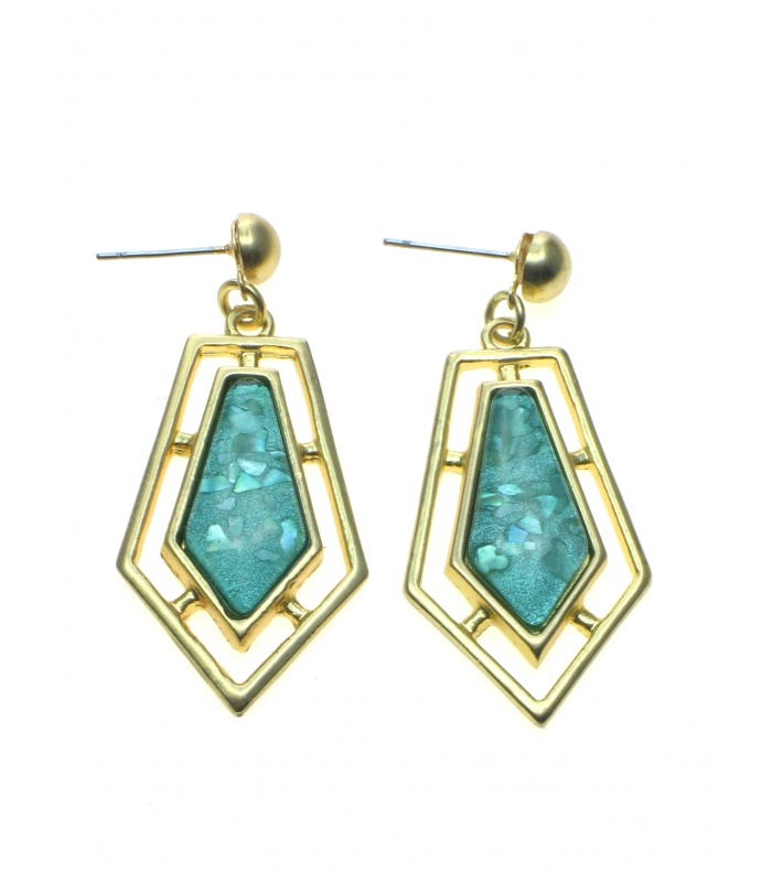 Mooie oorbellen met groene hars inleg in goudkleurige zetting.