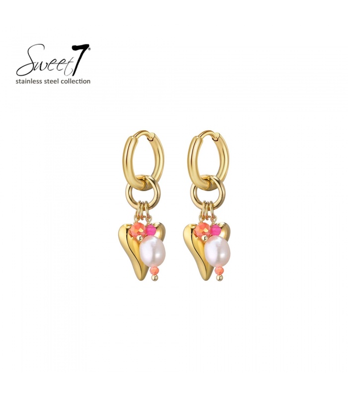 De combinatie van een goud hart, parel en roze kralen geeft deze oorbellen een speelse en luxe look. De gouden oorbel straalt romantiek en fashion uit. Perfect als trendy hart oorbel voor elke dag.
