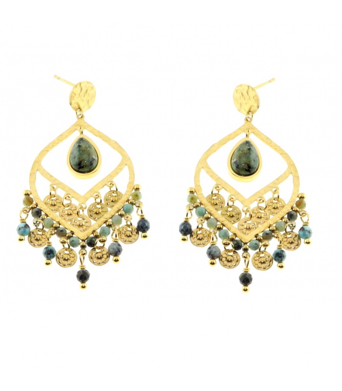 Oorbellen zijn een must-have accessoire om je look op te fleuren. Deze goudkleurige oorbellen met groene kralen en verfijnde bedeltjes brengen een vleugje elegantie en speelsheid. De combinatie van goud en groen zorgt voor een warme uitstraling die perfect past bij zowel casual als feestelijke outfits. De bedeltjes bewegen subtiel mee, wat zorgt voor een speelse touch en extra flair bij elke stap die je zet.