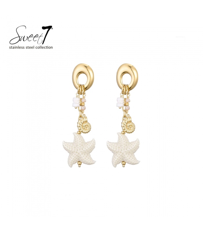 Wil je een oorbel die je direct in zomerse sferen brengt? Deze oorbellen combineren goudkleurige details met een speelse zeester hanger. De mix van kralen en bedels maakt deze statement oorbellen perfect als trendy fashion oorbel.