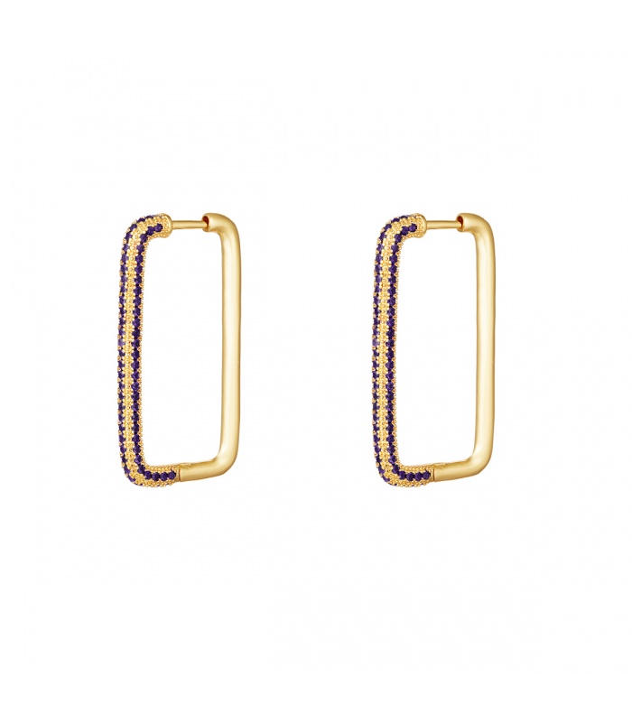 Rechthoekige goudkleurige oorbellen met paarse zirkoonstenen