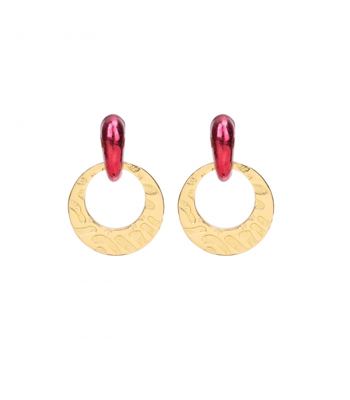 Roze rode oorstukje met een goudkleurige ronde hanger.