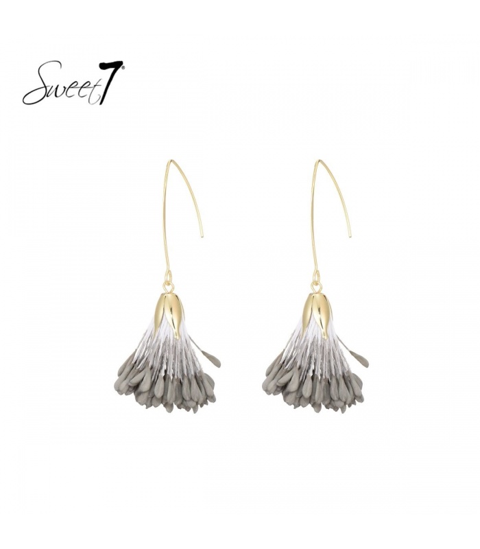 Deze goudkleurige oorhangers met grijze hangende raffia zijn een perfecte mix van elegantie en bohemian chic. De delicate gouden basis straalt luxe uit, terwijl de speelse raffia een trendy twist geeft.