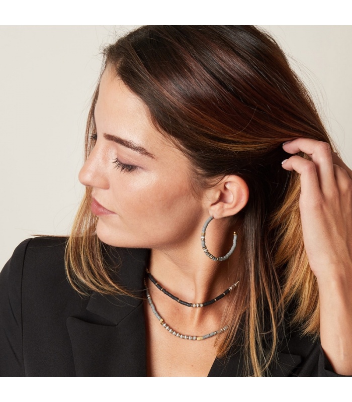 Grijze oorbellen gemaakt van kleine...