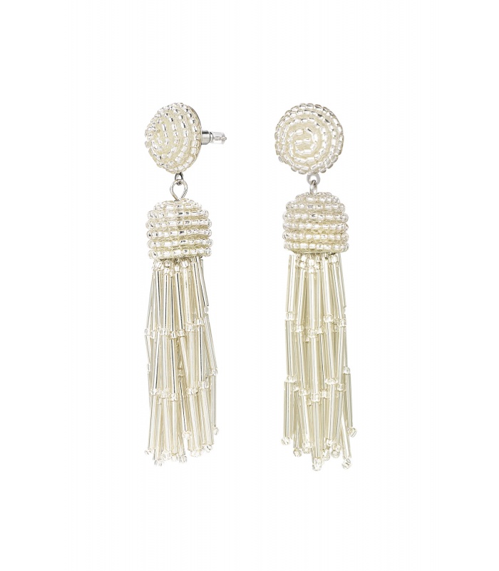 Licht grijze oorhangers met strengen van glas kralen