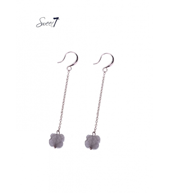 Langwerpige oorbellen met grijze natuursteen hanger.
