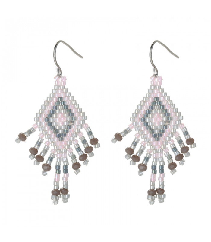 Grijze mooie oorbellen met kralen in verschillende kleuren