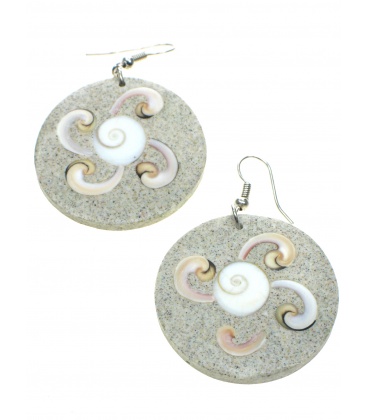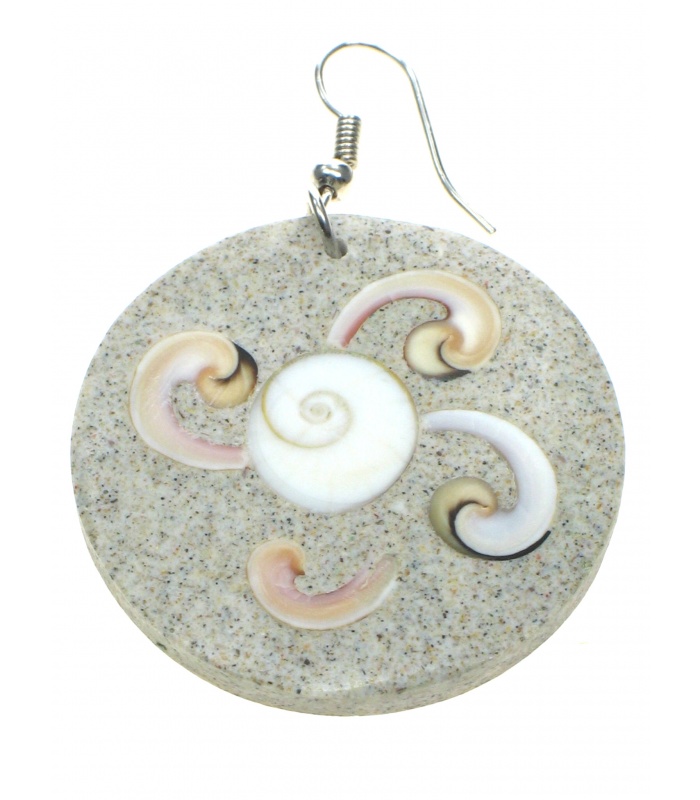 Prachtige Zandkleurige Stenen Oorhangers met Glanzend Motief