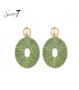 Groene raffia oorhangers met goudkleurig oor stukje. De lengte van deze oorbel is circa 7 a 8 cm. Voor oren met gaatjes. De oorbellen zijn nikkelvrij. De oorbellen zijn voorzien van stoppertjes.