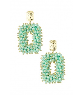 Groene vierkante glas kralen oorhangers met een goudkleurig oor stukje. De lengte van deze oorbel is circa 6.40 cm. Voor oren met gaatjes. De oorbellen zijn nikkelvrij. De oorbellen zijn voorzien van stoppertjes.