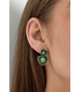 Groene oorhangers in de vorm van een hart en een ster. De lengte van deze oorbel is circa 2.50 cm. Voor oren met gaatjes. De oorbellen zijn nikkelvrij. De oorbellen zijn voorzien van stoppertjes.