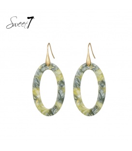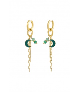 Groen gekleurde ovale oorhangers met een goudkleurig oor stukje. De lengte van deze oorbel is circa 4.60 cm. Voor oren met gaatjes. De oorbellen zijn nikkelvrij. De oorbellen zijn voorzien van stoppertjes.