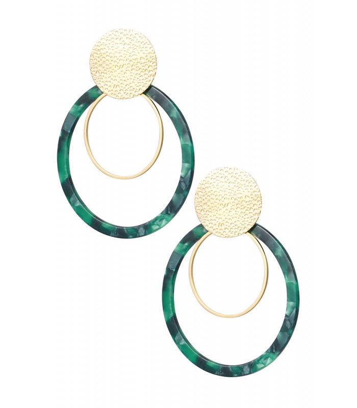 Groen met goudkleurige cirkels oorhangers
