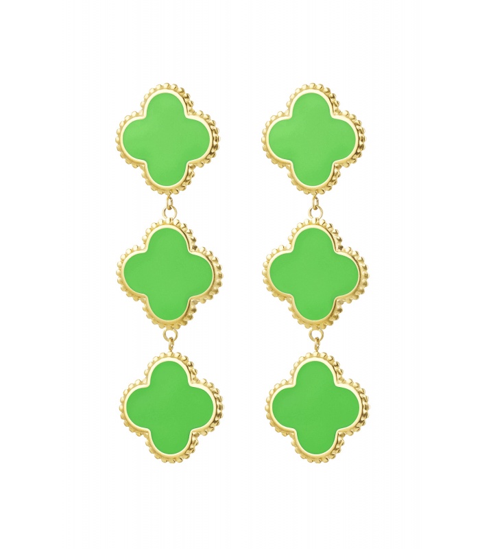 Groene klaver oorhangers met een goudkleurige rand.