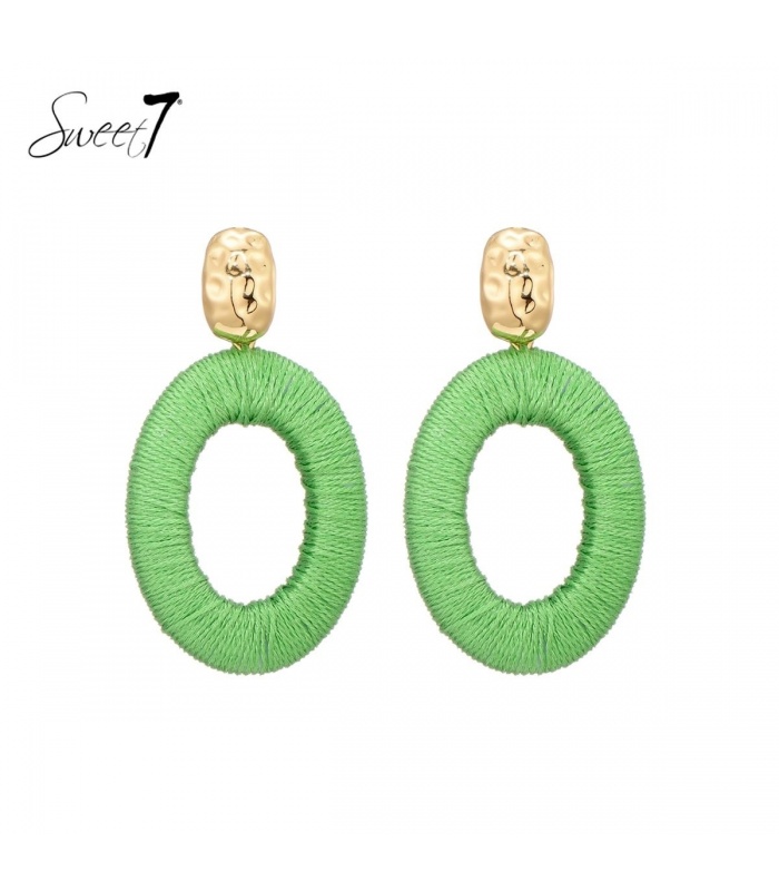 Sweet7 is een bekend merk in de sieradenindustrie en staat bekend om haar stijlvolle en trendy sieraden. De groene koord oorhangers met een goudkleurige oorstukje zijn een perfect voorbeeld van de filosofie van het merk.