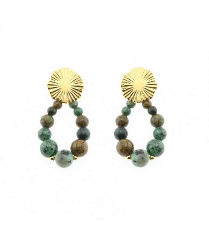 Deze oorbellen zijn een elegante keuze voor elke modebewuste vrouw. De groene kralen voegen een subtiele kleur toe, terwijl het goudkleurige, bewerkte oorsieraad zorgt voor een luxe uitstraling. Perfect voor zowel dagelijkse outfits als avondkleding. Door de combinatie van groen en goud zijn deze oorbellen makkelijk te matchen met andere sieraden en passen ze bij diverse stijlen.