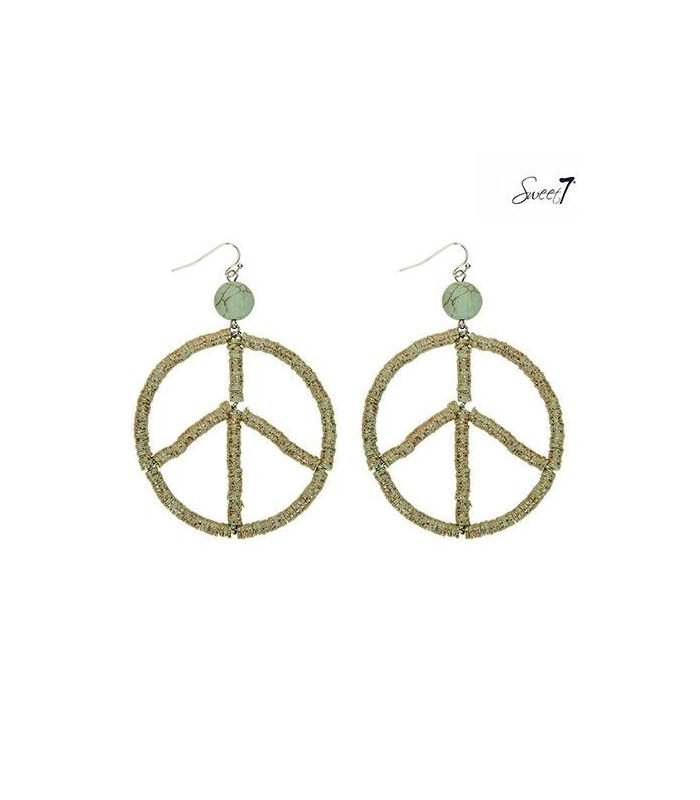 Groene met goudkleurige oorhangers met als hanger een peace teken.