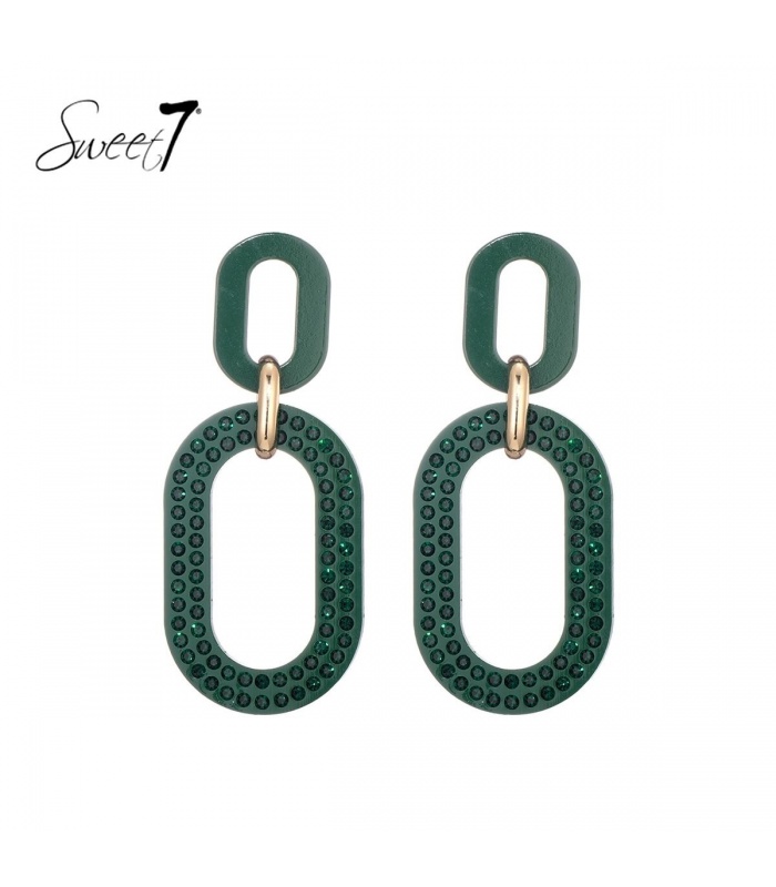 Betover jezelf met onze prachtige groene oorhangers, voorzien van een luxueus goudkleurig element en sprankelende steentjes. Deze oorhangers voegen een vleugje natuurlijke schoonheid en glamour toe aan elke look, waardoor je straalt als nooit tevoren.
