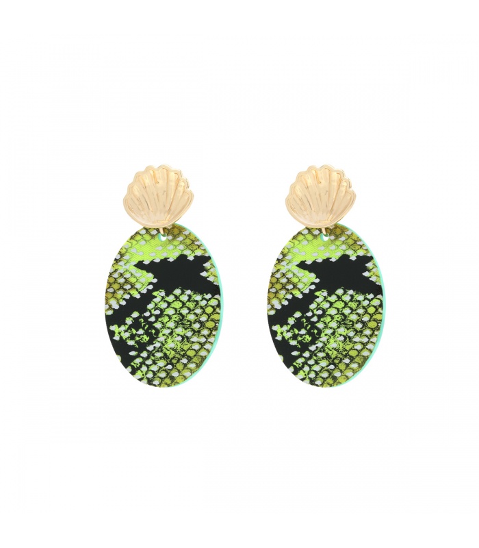 Groene slangenprint oorbellen in twee mooie neonkleuren.