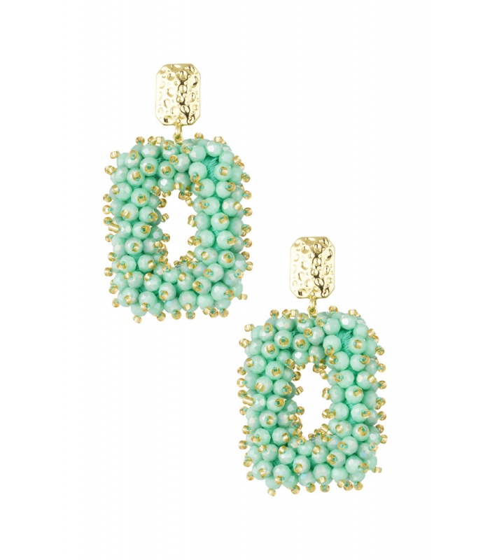 Groene vierkante glas kralen oorhangers met een goudkleurig oor stukje.