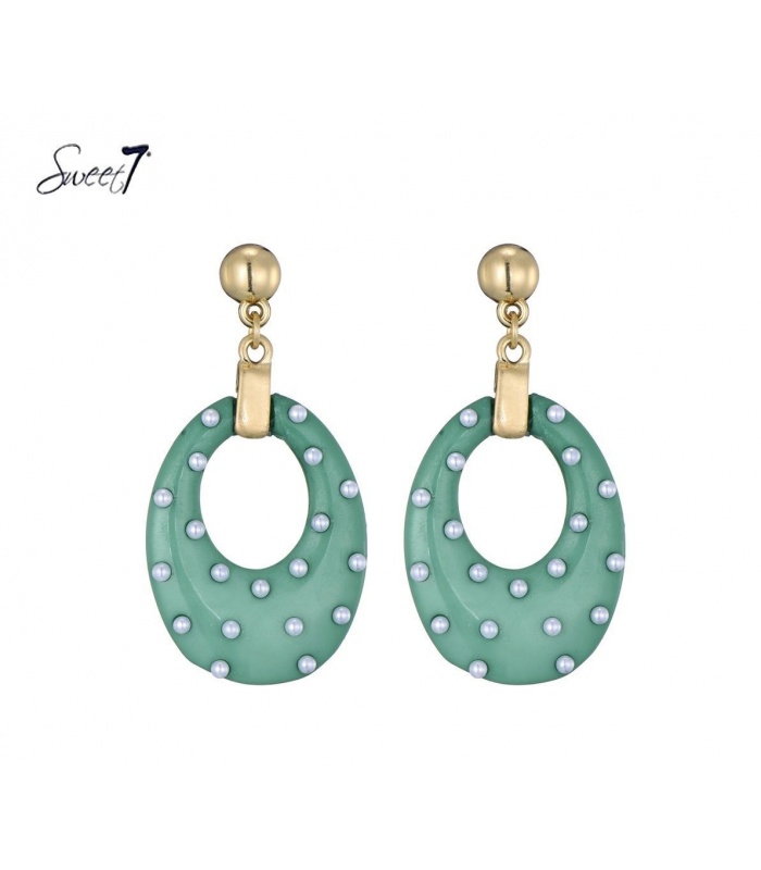 Oorbellen met ovale groene hanger en kleine pareltjes van Sweet7.