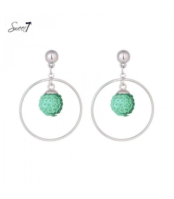 Ontdek de ultieme fashion statement: onze zilverkleurige oorbellen met ronde hanger en bolletje met sprankelende groene pailletten! Deze opvallende accessoires zijn perfect voor de moderne vrouw die haar stijl wil laten schitteren.